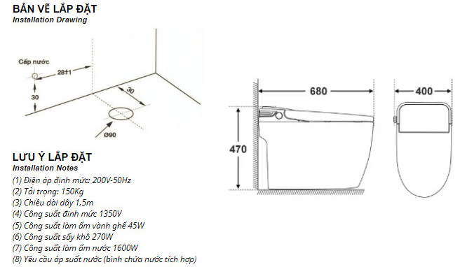 * Chức năng: tự rửa, sưới ấm nắp, sấy khô, khử mùi, rửa massage.