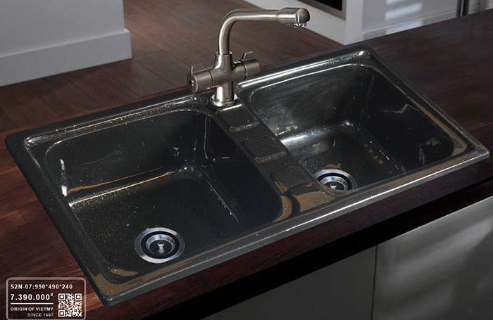 - Chậu rửa chén đá nhân tạo Việt Mỹ có thành phần chủ yếu từ khoáng đá tự nhiên và keo Acrylic, được sản xuất trên công nghệ hiện đại. Sản xuất nguyên bệ nhờ tính uốn cong của đá nhân tạo, không hàn, không mối nối, vừa đảm bảo tính thẩm mỹ, vừa đảm bảo độ an toàn, không rò rỉ nước.