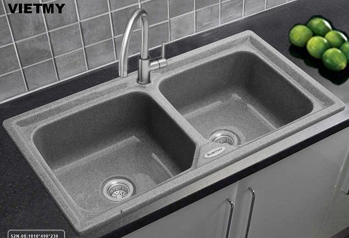 - Chậu rửa chén đá nhân tạo Việt Mỹ có thành phần chủ yếu từ khoáng đá tự nhiên và keo Acrylic, được sản xuất trên công nghệ hiện đại. Sản xuất nguyên bệ nhờ tính uốn cong của đá nhân tạo, không hàn, không mối nối, vừa đảm bảo tính thẩm mỹ, vừa đảm bảo độ an toàn, không rò rỉ nước.