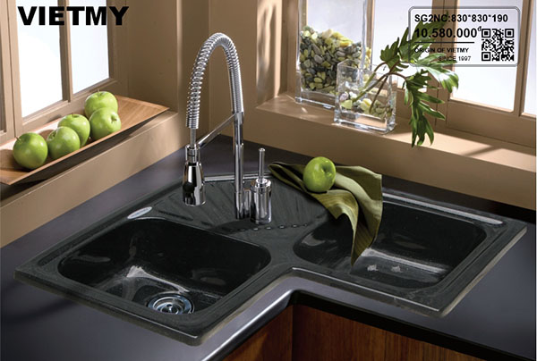 - Chậu rửa 2 hộc cánh ở giữ ( chậu góc)