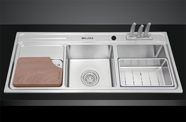 Chậu rửa chén Malloca được trang bị bộ xả ở từng hộc rửa giúp ngăn mùi hôi hiệu quả trong quá trình sử dụng. Khi sử dụng chậu đảm bảo bạn sẽ không bị khó chịu bởi mùi hôi của thức ăn, đồ dùng khi rửa còn sót lại. Bởi mùi hôi sẽ được xử lý nhanh chóng giúp không gian bếp luôn thoáng và sạch sẽ.