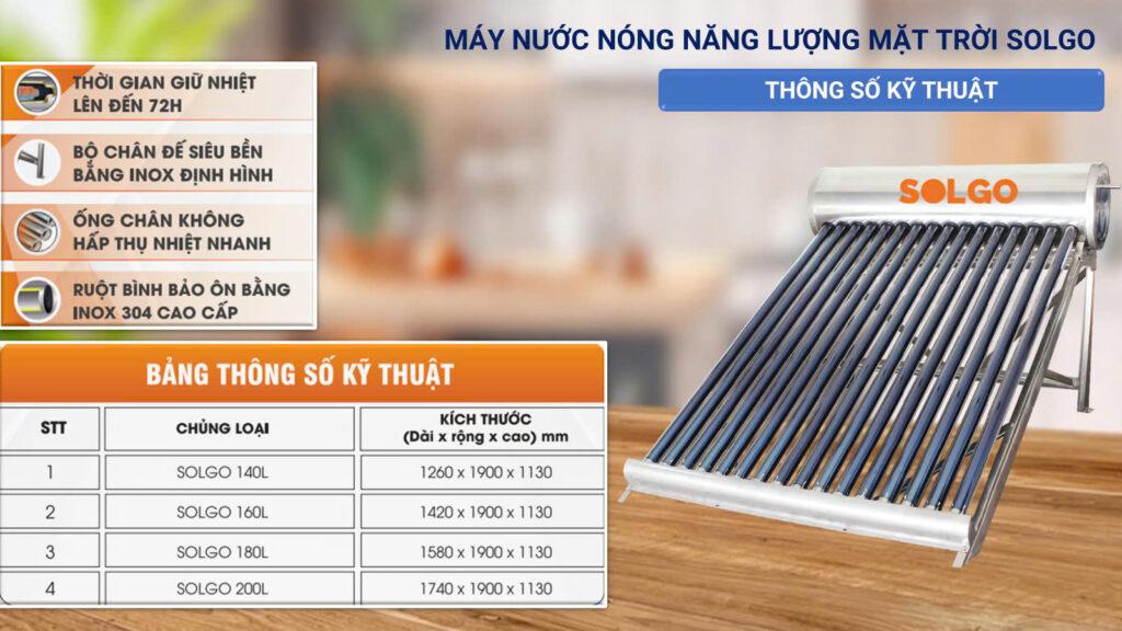 Máy nước nóng năng lượng mặt trời Toàn Mỹ SOLGO 160 Lít